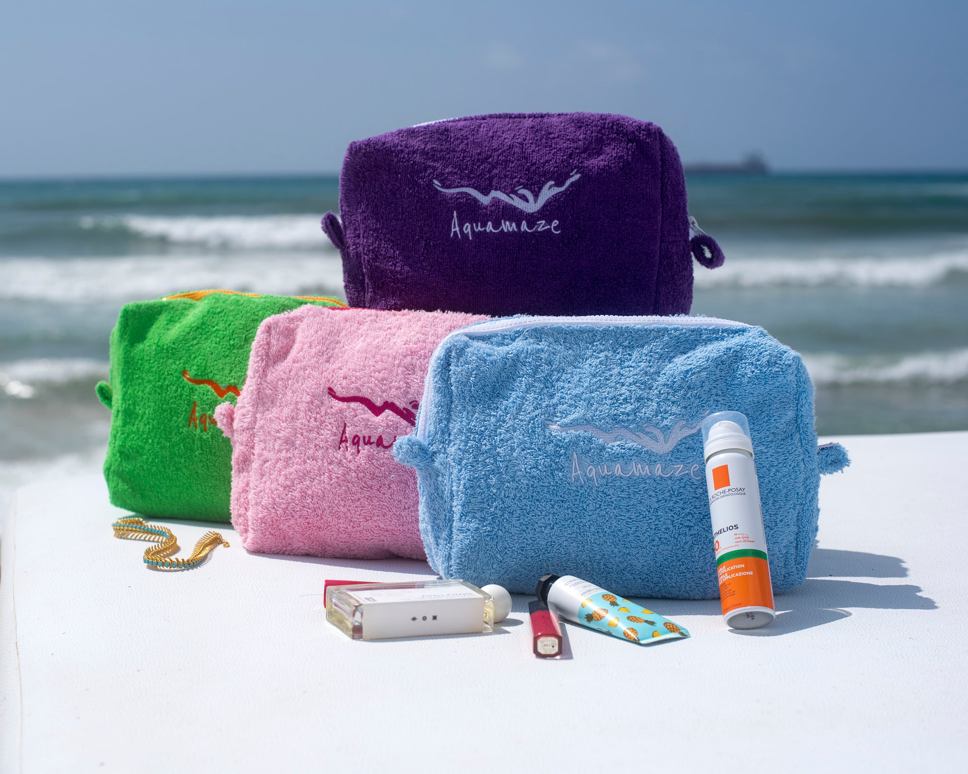 Perfect for travel, everyday use and beach, heavenly practical, our pouch is stylish and spacious.