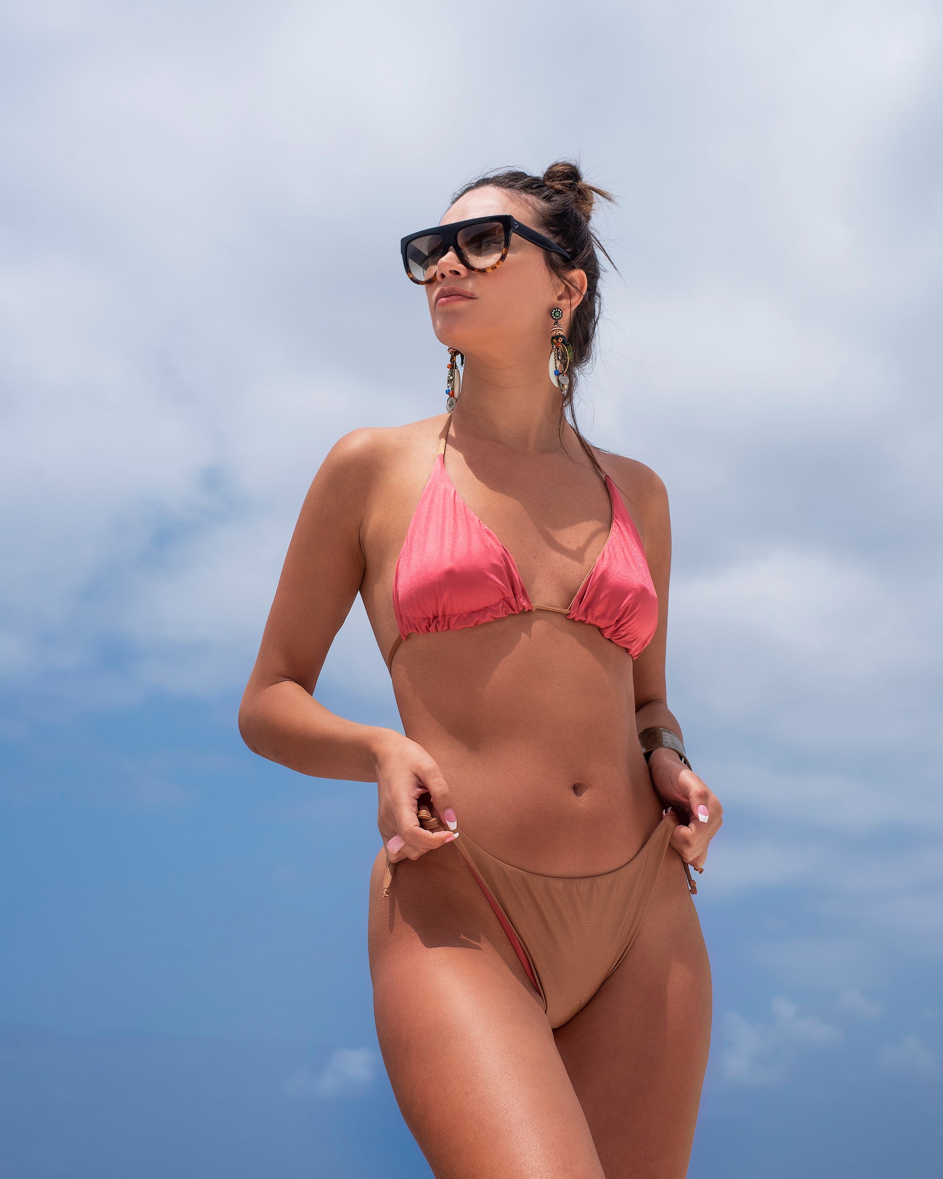 Due to the delicate nature of our swim fabric and to ensure your swimsuit remains in perfect condition, we advise you to quickly rinse your swimsuit in a warm soapy water when you return from the beach or the pool and to follow these instruction: